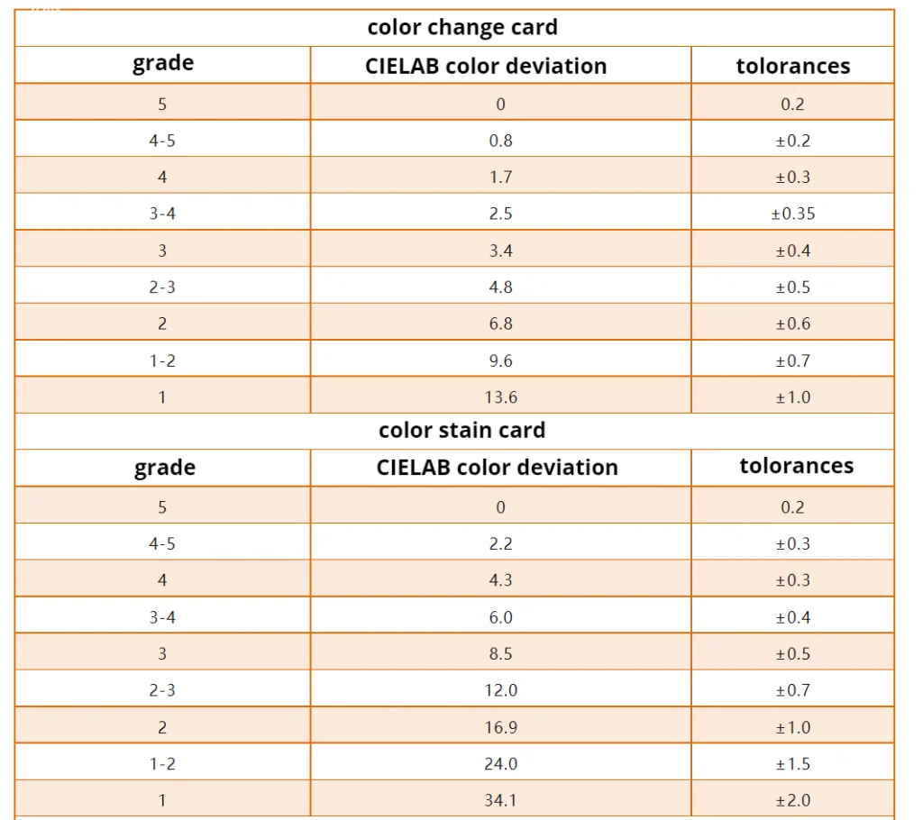 During colorfastness gray scale grading, discoloration and migration gray scales are used to evaluate colorfastness. Currently used gray scales include AATCC, ISO, JIS, and Chinese National Standard GB gray scales. Each gray scale has slightly different gray levels.
