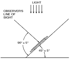 8.2 Viewing Angle: During observation, the sample and gray card should be placed on the same plane, with the line of sight forming approximately a 45° angle to the sample surface.