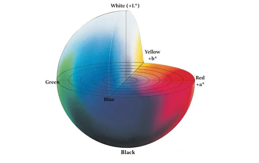 Colors measured in the CIE Lab color space are defined by three coordinates – L*, a*, and b* – with each coordinate corresponding to the following attributes: