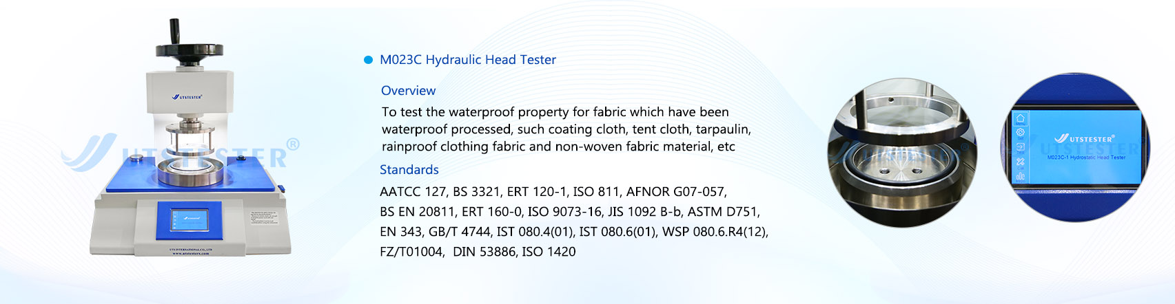 The hydrostatic pressure test measures the water permeability of a fabric under a certain water pressure. This test is suitable for all types of fabrics, including those with water-repellent treatments.
