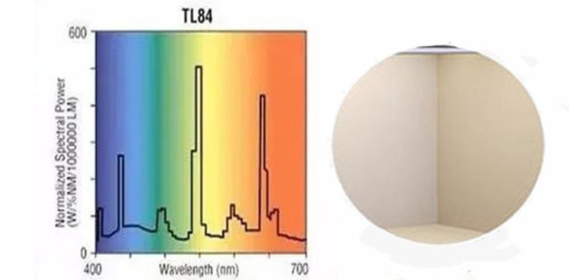 The TL84 (F) light source belongs to the F series of fluorescent light sources, a proprietary product of Philips. Widely used in Marks & Spencer stores across the UK, it has become a key commercial color-matching light source in the European market. The TL84 light source typically employs Philips' “TLD” (thin-walled) fluorescent tubes coated with rare-earth phosphors. It is a trichromatic fluorescent lamp with a correlated color temperature (CCT) of 4000K. CWF light source (F2) is primarily used in commercial and office settings in the United States, with a correlated color temperature of 4150K. CWF stands for Cool White Fluorescent.